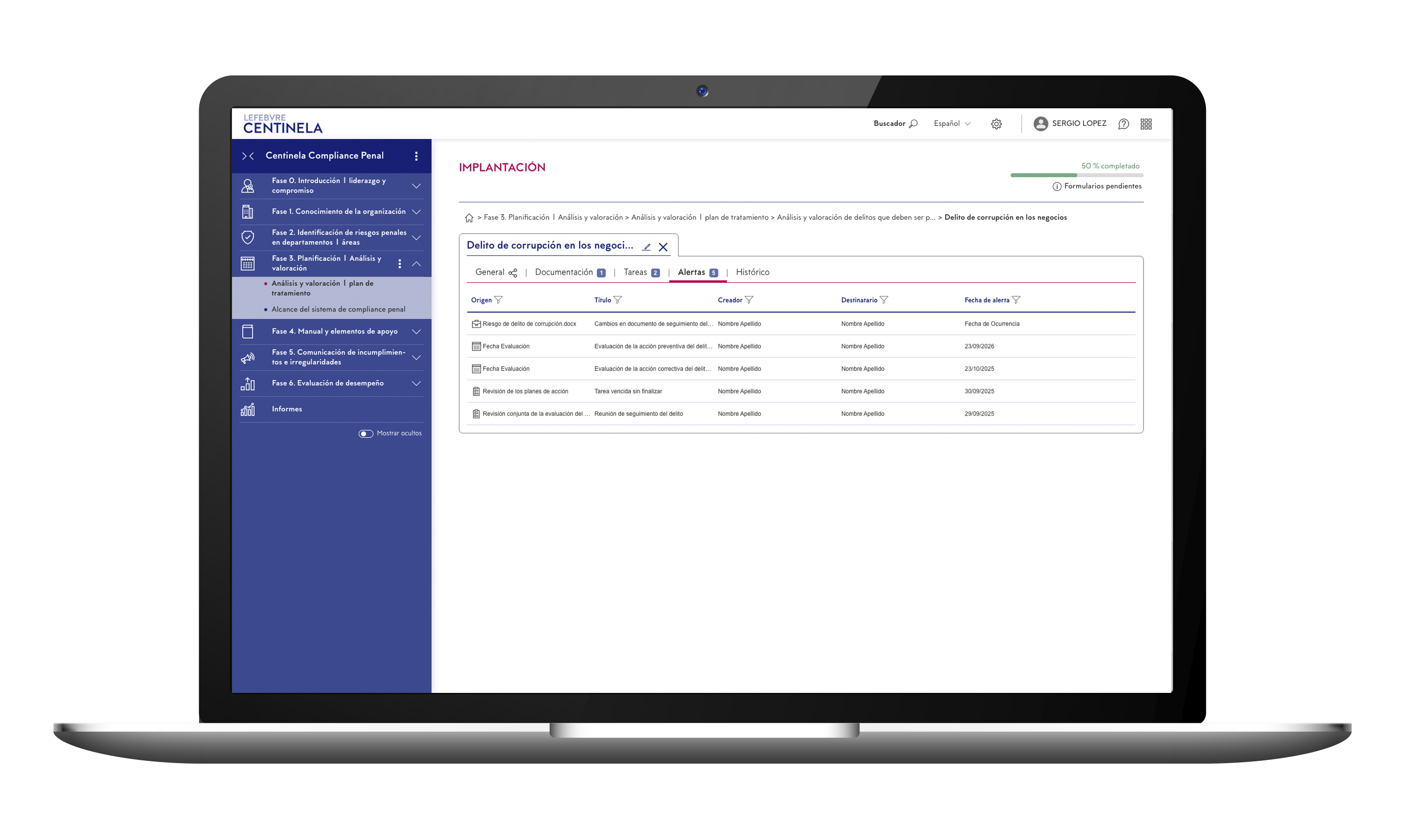 Posibilidad de asignar tareas, convocar reuniones, establecer controles, definir alertas y establecer el ámbito de acción de cada usuario.